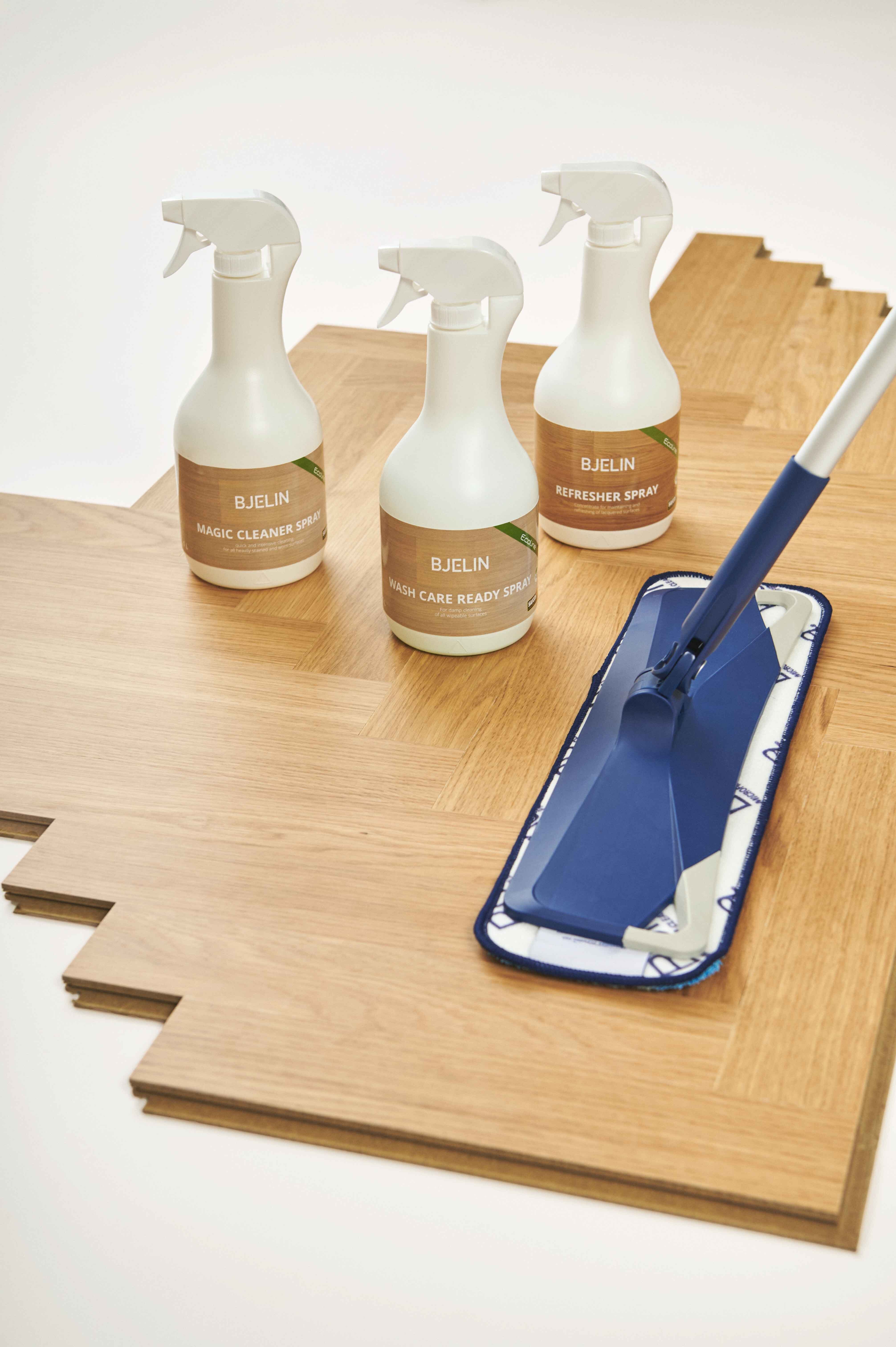 Budući da herringbone ima više spojeva od klasičnog poda, još je važnije koristiti što manje vode. „Pod bi se trebao osušiti unutar dvije do tri minute nakon brisanja,“ savjetuje Anders. „To je najbolji znak da koristite pravu količinu vode.“